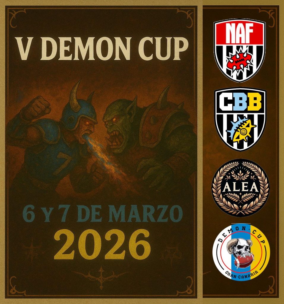 Como cada año, la Demon Cup, el torneo de Bloodbowl mas importante de Gran Canaria, hace acto de presencia y por primera vez se celebra en ALEA. Jugadores de todo el archipiélago y probablemente alguno de fuera, se enfrentarán en estadios repletos de hooligans deseosos de ver como se despachurran unos a otros y como la sangre fluye entre touchdown y touchdown.